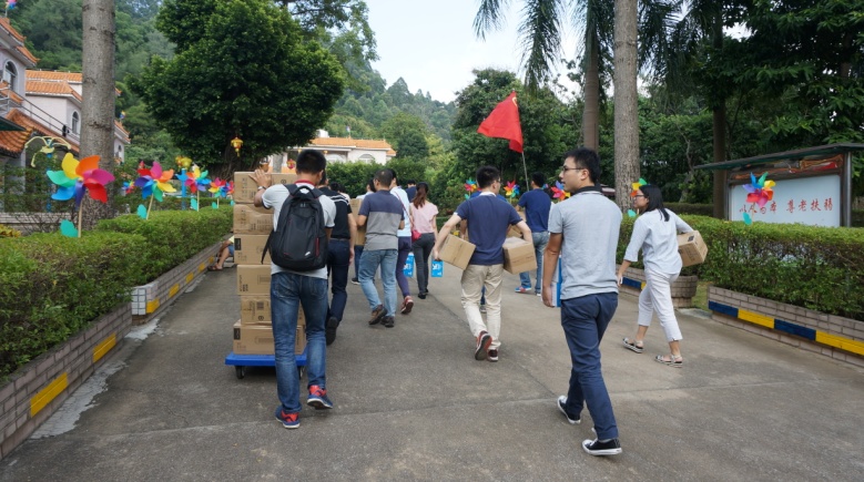 One day, before Double Ninth Festival, GDE Union of Party and League organized a gerocomium visit which is called “Warm Double Ninth Festival and Most Beautiful Sunset”. Some of young staffs were sent to Shilou Gerocomium to comfort old who lived there.