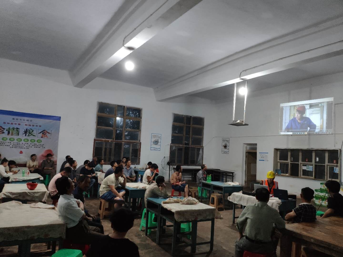 5. According to main idea “keeping from risk, hidden danger and accident” and based on the theme “safety production and education”, site builders were organized to watch safety education video to emphasis their awareness of safety, red line and responsibility.