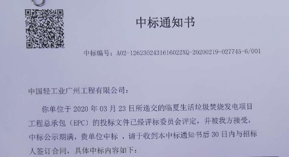 Recently, GDE won the bidding of Linxia Domestic Waste to Energy EPC Project with highest mark during bidding evaluation by Assessment Committee.