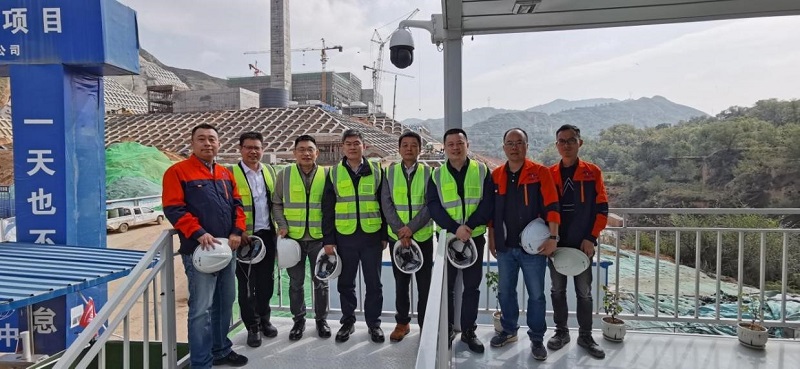 On 7th Oct, Zhao Guoang, Secretary of Party Committee and Chairman, Chen Rongrong, Deputy Secretary of Party Committee and CEO and Chen Zhiming, Vice President from Haisum Group visited GDE’s Linxia Domestic Waste to Energy EPC Project Site for construction progress and safety management check, accompanied with Luo Jun, Secretary of Party Committee and General Manager and Huang Yuxiang, Director of the 7th Engineering Department from GDE.
