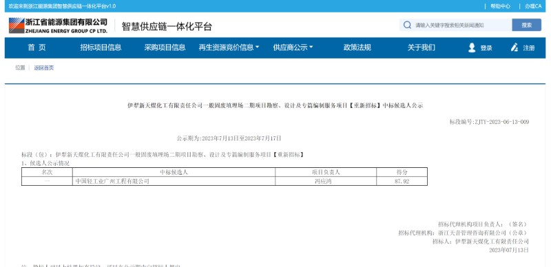 Ili Kazakh Autonomous Prefecture Xintian Coal Chemical Co. , Ltd. General solid waste landfill phase II project (survey, design and special articles compilation services)
