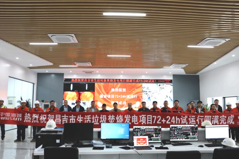 On October 30, 2023 at 11:19, the Changji domestic waste incineration power generation Project successfully completed a 72+24 hour full load trial run. During the trial operation, the equipment ran smoothly and the parameters of the electrical, thermal control, leachate, flue gas treatment and other systems were normal,which meeting the design indicators and laying a solid foundation for put the project into commercial operation formally.