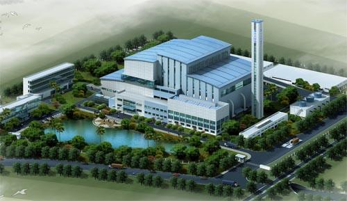 該項目配置3臺500噸/日的爐排焚燒爐,2×18MW凝汽式汽輪發電機組,日處理垃圾1500噸,年處理垃圾54萬噸,用地面積102畝,投資總額約7.6億人民幣。