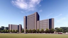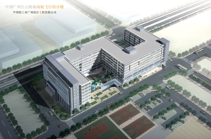 工程總用地面積為22345.4平方米,總建筑面積約45074平方米。包括辦公及公寓兩部分的使用功能,設(shè)計將飛行員公寓沿用地北側(cè)展開,最大限度地爭取到較好朝向和寬闊視野,辦公樓設(shè)于用地南面,入口朝向南側(cè)的寬闊大道,大氣開敞,也避開了對基地范圍的干擾。辦公樓與公寓樓之間形成半圍合的內(nèi)庭院,底部通過兩層的架空連廊連接,使庭院在圍合的角部局部變得通透,豐富了庭院的內(nèi)部空間,同時也為人們提供了休憩和交流的場所。